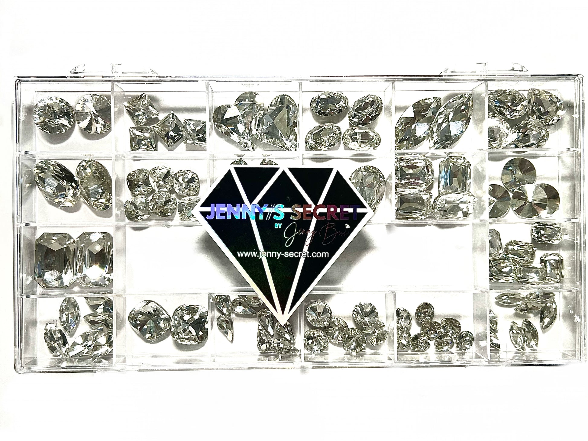Our Clear Diamond Bling Box features pointy-backed stones in a variety of shapes and sizes to add sparkle to any creation. With up to 82 stones per box, you can easily enhance any project with a touch of elegance and sophistication. These diamonds pair perfectly with Jenny Secret Crystal Gel for an extra-special finish.