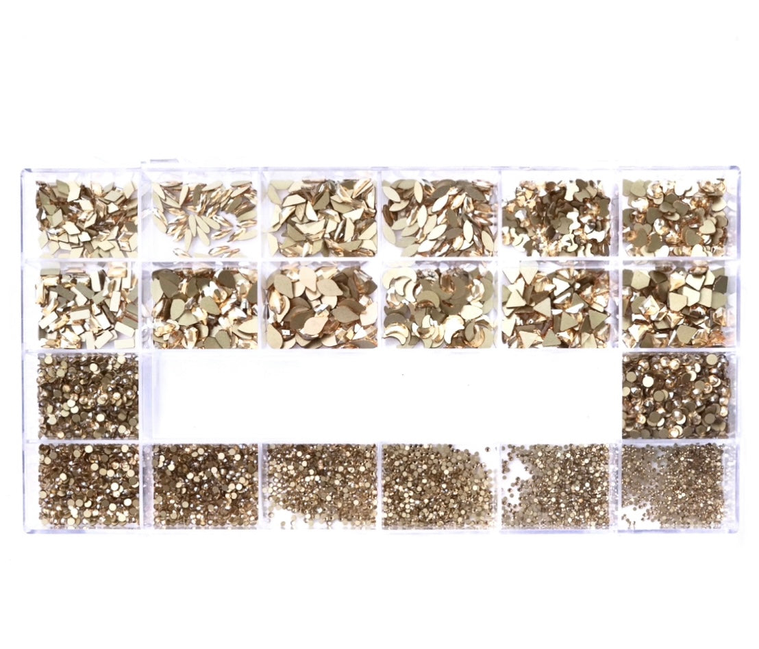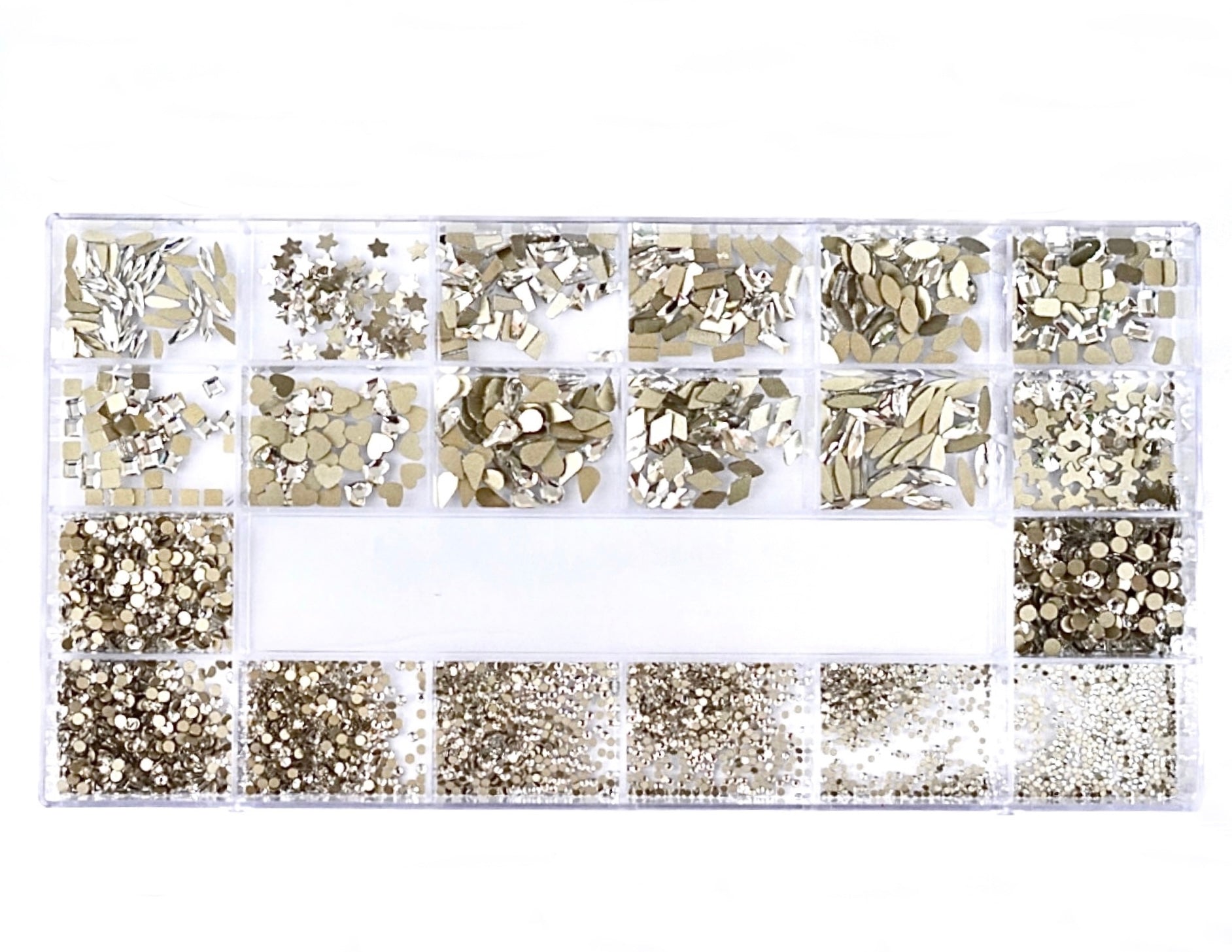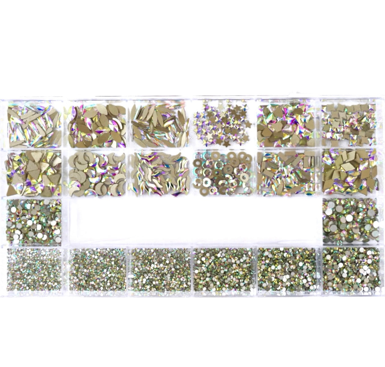 This box features over 12 different shaped rhinestones with over 1000 pieces to help you step up your bling game!